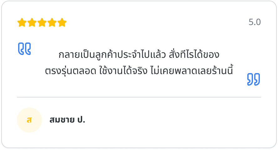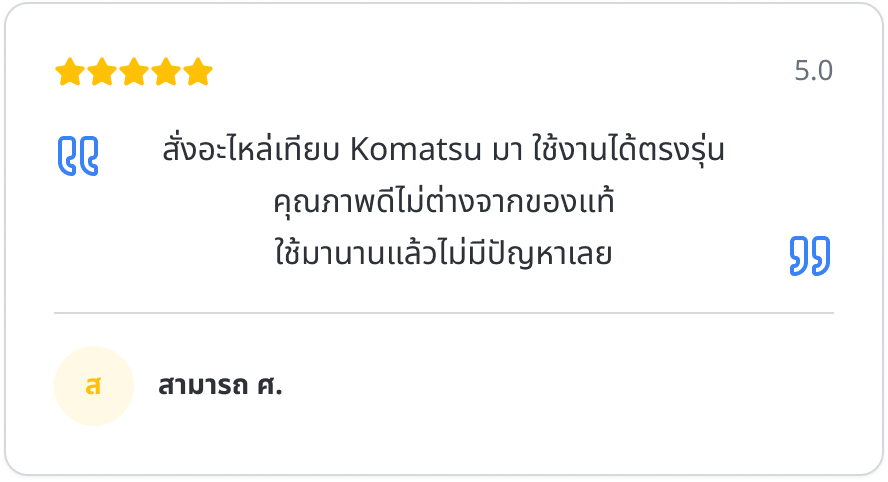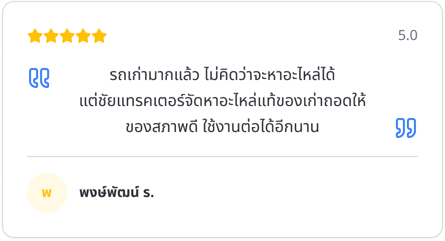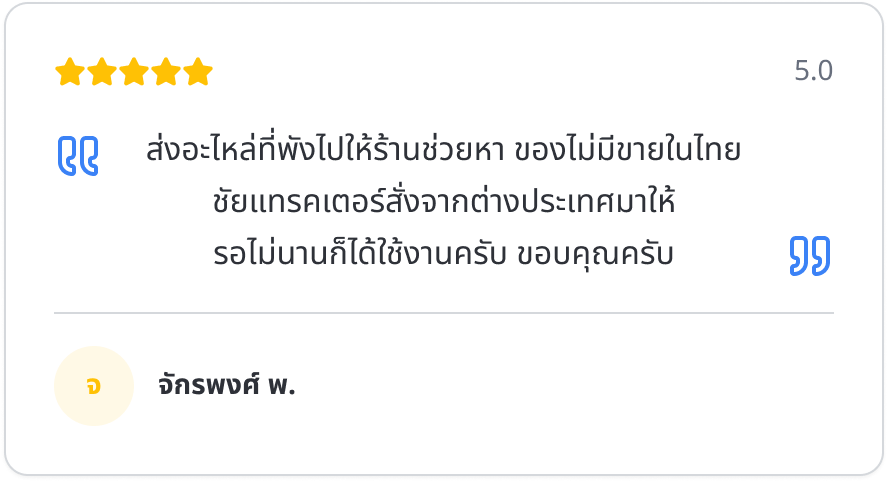 เป็นที่ไว้วางใจจากธุรกิจหลายร้อยแห่งทั่วประเทศไทยในการจัดหาชิ้นส่วนอะไหล่ที่เชื่อถือได้